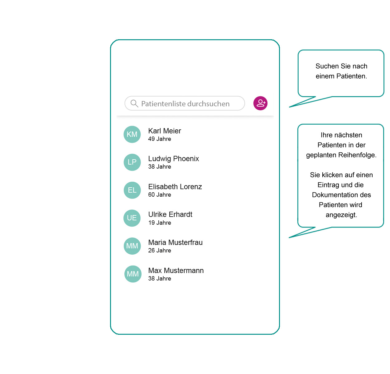 - Suchen Sie nach einem Patienten.