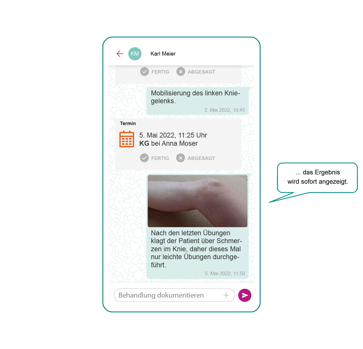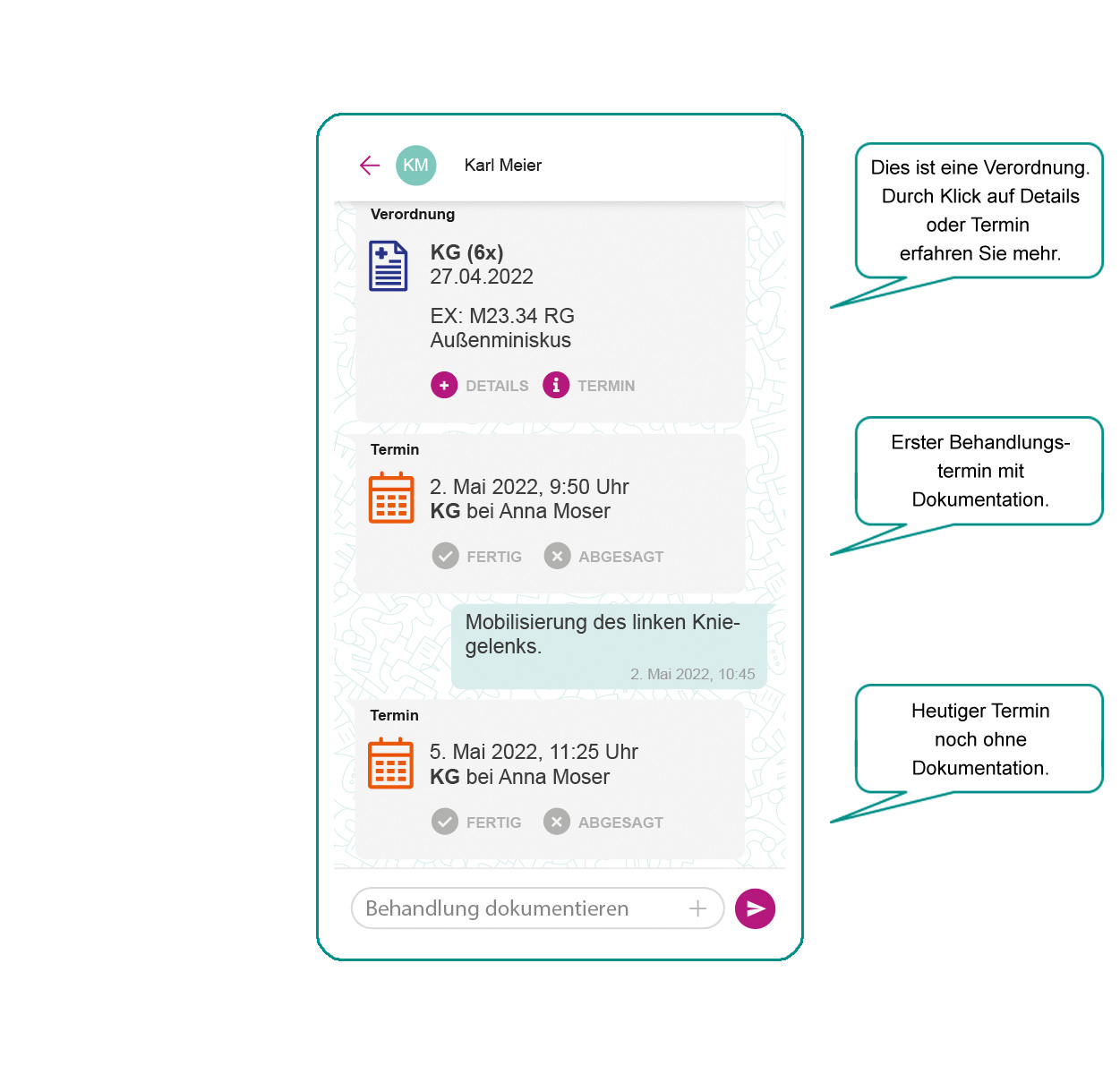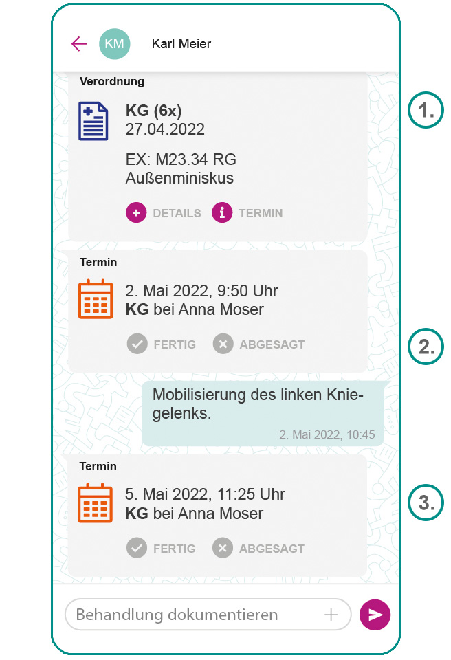 - Erster Behandlungstermin mit Dokumentation.