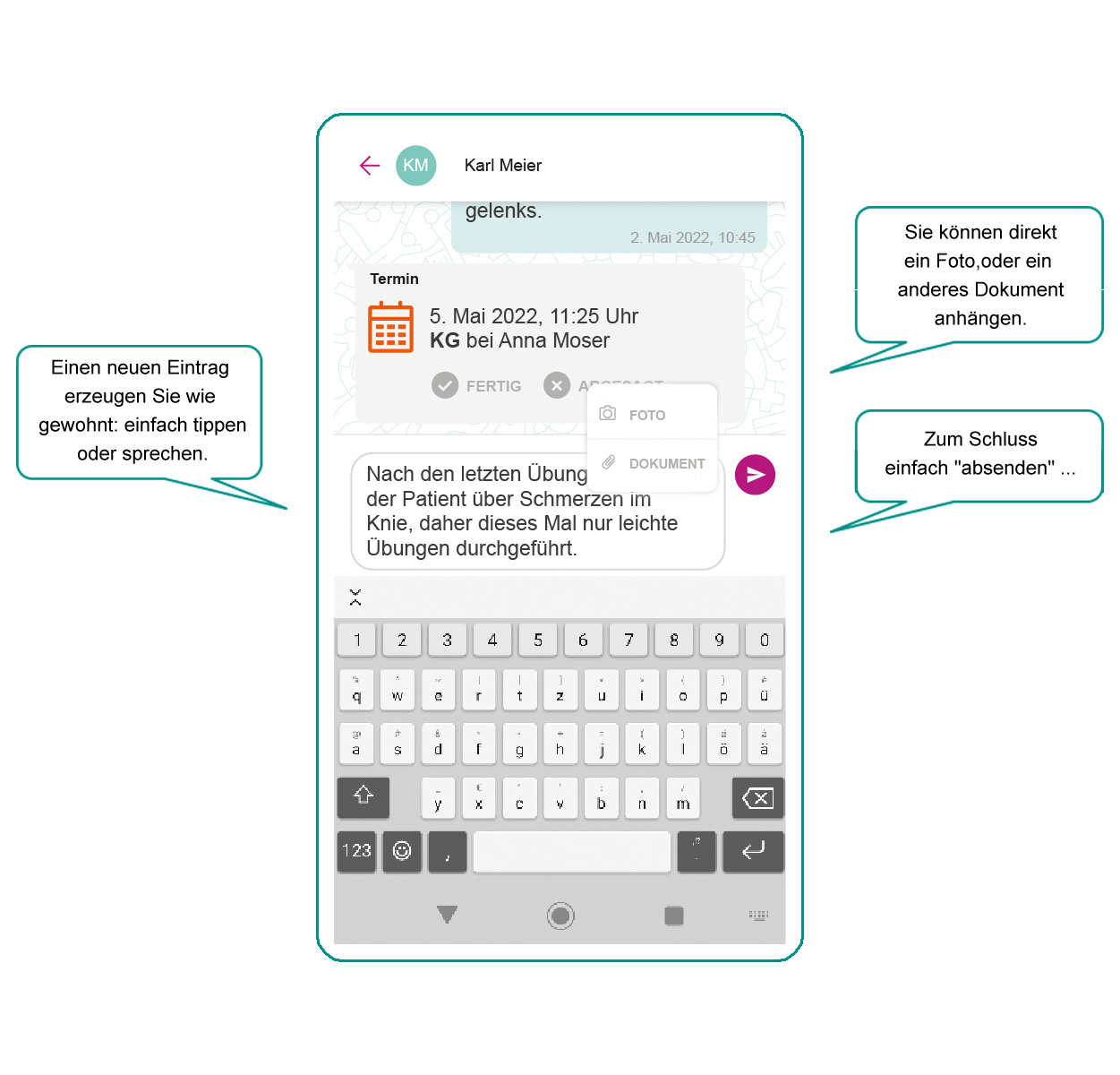 - Sie können direkt ein Foto oder ein anderes Dokument anhängen.